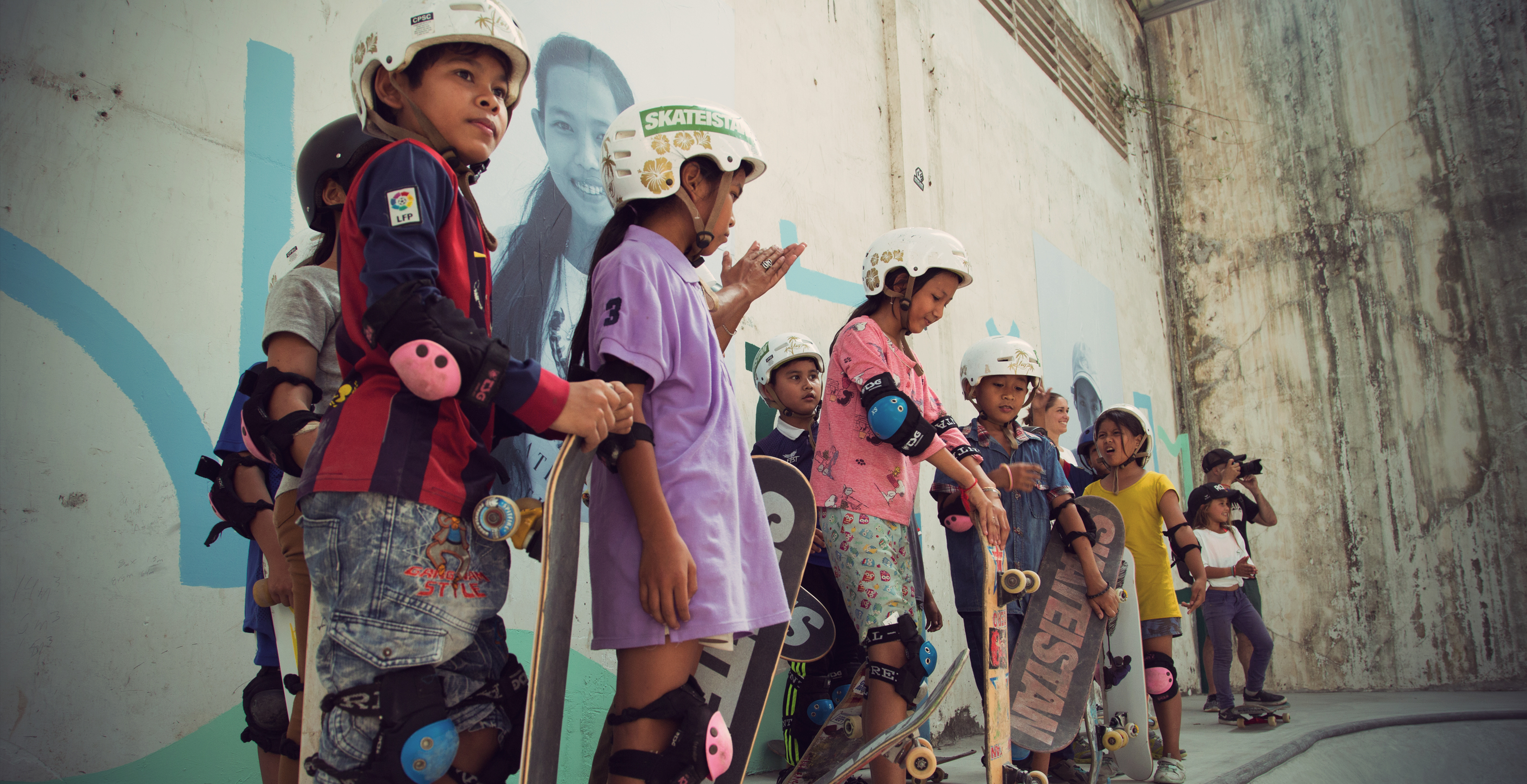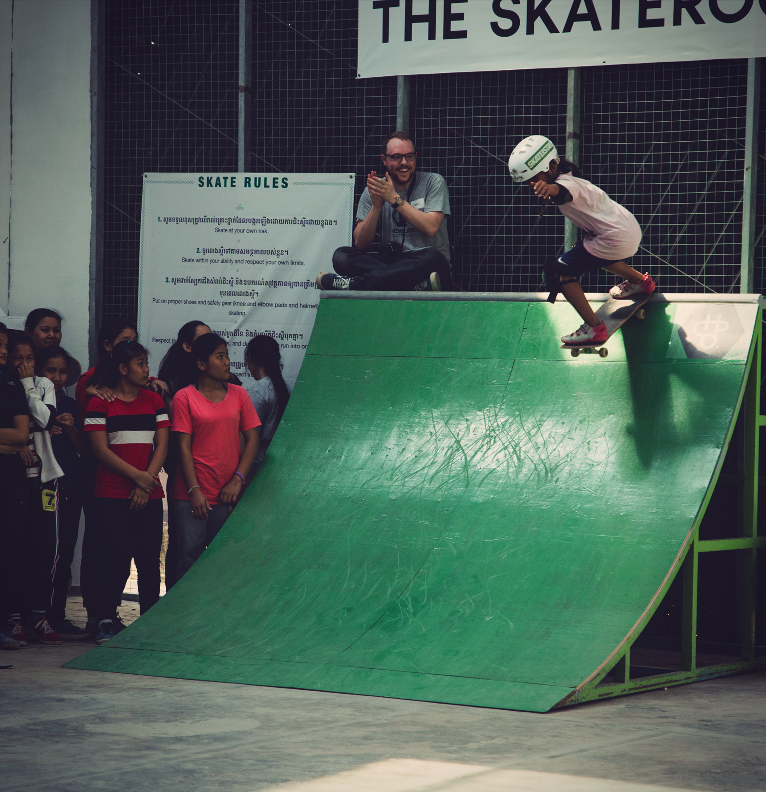 Skaters and students celebrate in Cambodia