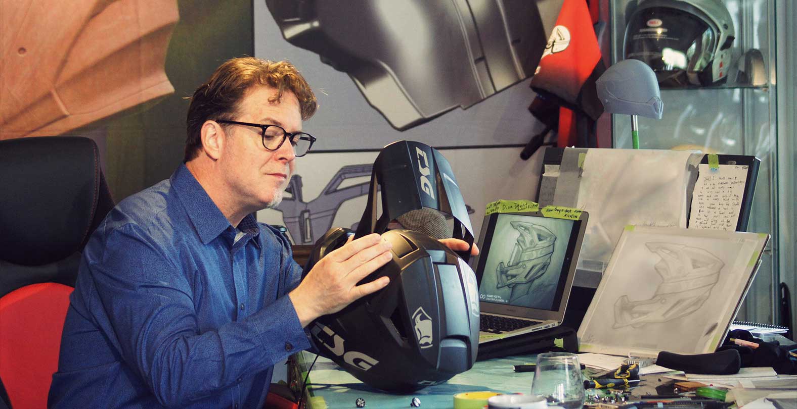 Stephane describes himself as a “the helmet guy”, who at 53 years old still practices helmet design in an old school way. In his own words he takes responsibility for every stage of a helmets design, from concept and styling to production and brings in the best of the best, like in CAD, to help to make the process perfect. Stephane also believes that having a relationship with a factory is a key to the success of his methods: “The Sentinel is in the very capable hands of a small factory who do only high-end quality projects and I have my coffee mug with my name on it hanging there with the rest of the employees.”